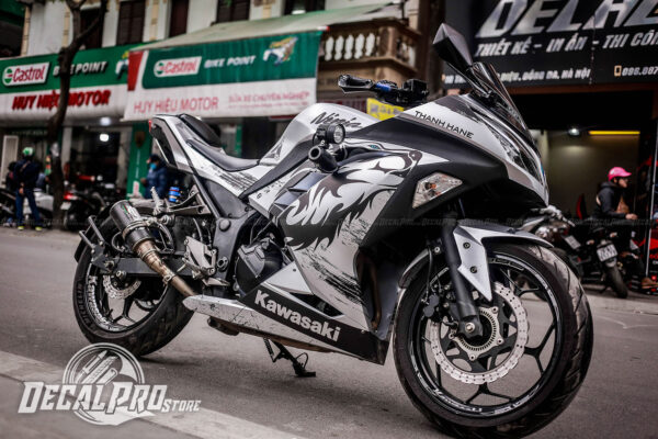 Mẫu tem xe Ninja 300 Green Crazy Wolf trên được DecalPro sản xuất trên dây chuyền hiện đại của Nhật Bản đảm bảo màu sắc và chất lượng vật liệu luôn ở trạng thái tốt nhất. Chất liệu decal cao cấp, cho bề mặt đồng đều như sơn, thi công dán ốp mí cẩn thận, tỉ mỉ trong từng chi tiết nhỏ nhất mang đến chất lượng hoàn thiện tốt nhất. DecalPro luôn mang đến cho khách hàng những sự lựa chọn hết sức tuyệt vời về ý tưởng và cả chất lượng sản phẩm mang đến sự an tâm, hài lòng cho khách hàng gần xa.