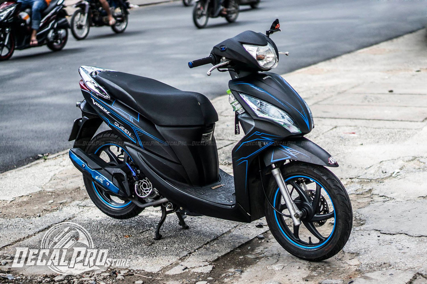 Mẫu tem xe Vision Blue Lighting trên được DecalPro sản xuất trên dây chuyền hiện đại của Nhật Bản đảm bảo màu sắc và chất lượng vật liệu luôn ở trạng thái tốt nhất. Chất liệu decal cao cấp, cho bề mặt đồng đều như sơn, thi công dán ốp mí cẩn thận, tỉ mỉ trong từng chi tiết nhỏ nhất mang đến chất lượng hoàn thiện tốt nhất. DecalPro luôn mang đến cho khách hàng những sự lựa chọn hết sức tuyệt vời về ý tưởng và cả chất lượng sản phẩm mang đến sự an tâm, hài lòng cho khách hàng gần xa.