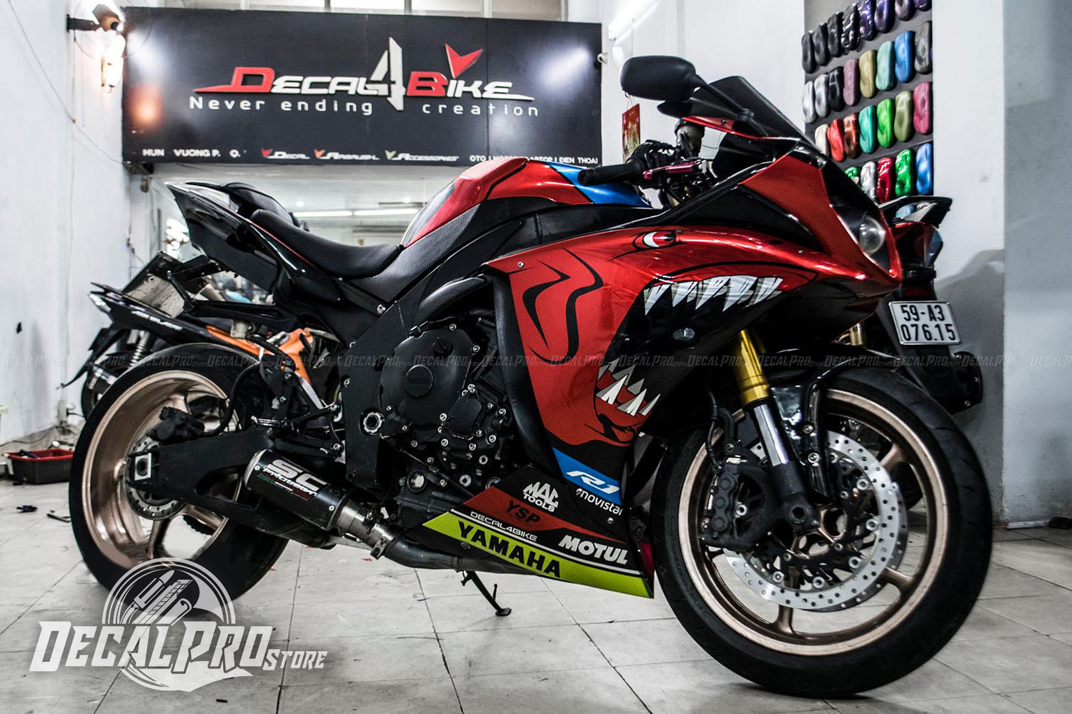 Mẫu Tem xe Yamaha R1 Red Candy Shark