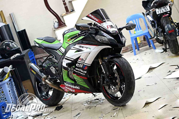Kawasaki ZX10R Trắng Trai Và Tem Rời Chrome Vàng